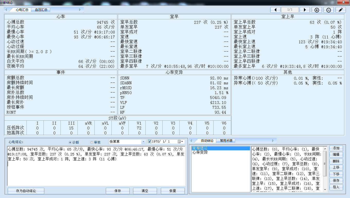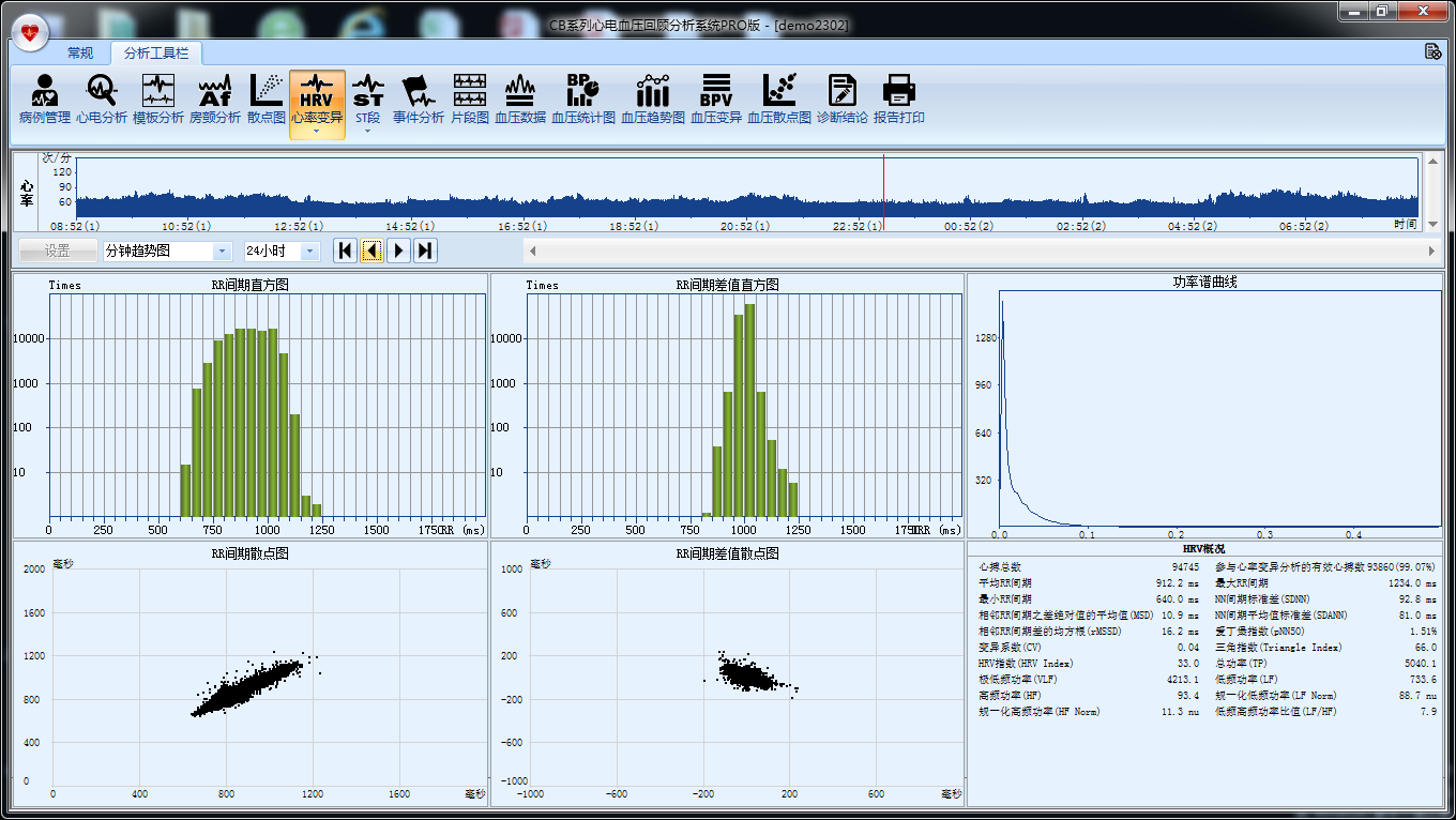 软件分析功能全面:除了基本的心率失常、ST段、起搏分析功能外,还具备模板分析、房颤分析、心率变异(HRV)分析、QTc分析、心率震荡(HRT)分析、T波电交替(TWA)分析、心室晚电位分析、心率减速力分析、心电向量分析、色谱图等诸多研究功能,同时软件提供特色编辑手段,帮助用户轻松完成分析工作。